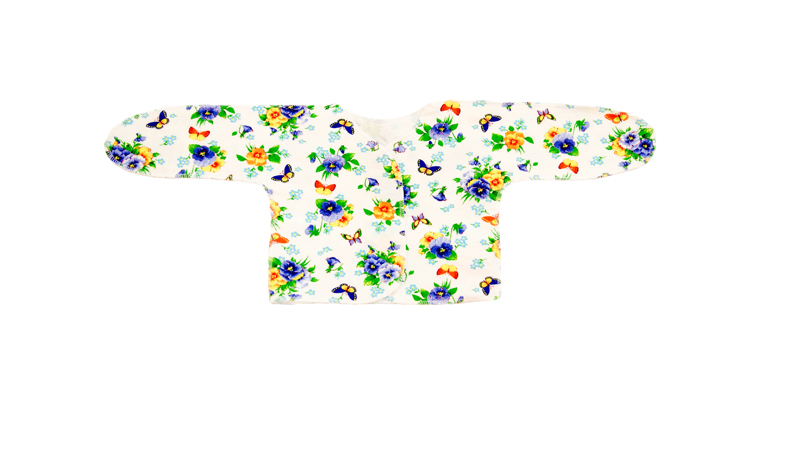 Фланель набивная, белоземельная; зашитый рукав, с запахом, размер 62-40 модель М-011