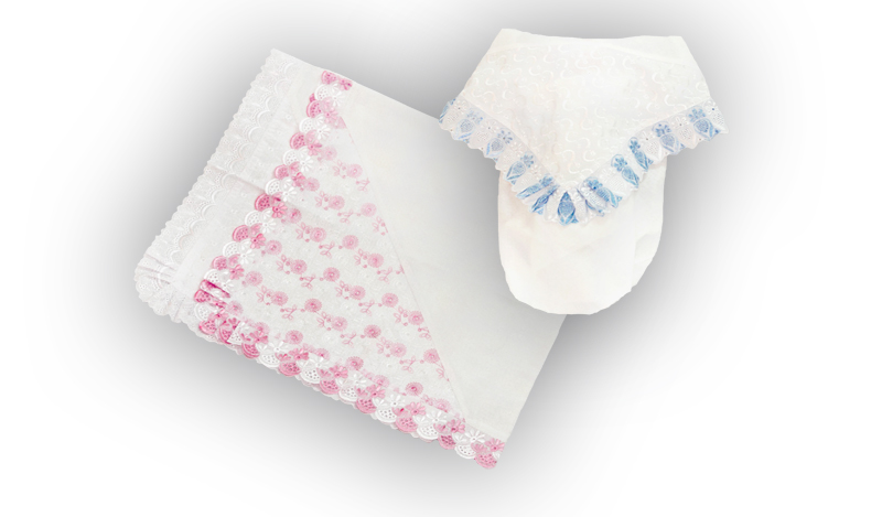 Вышитая ткань; основа бязь отбеленая, отделка широким шитьем, размер 80*80 модель М-100/1
