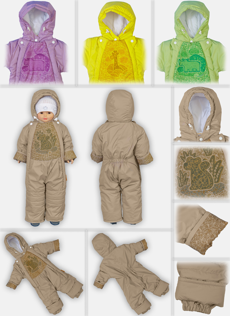 Комбинезон; курточная ткань"DEWSPO", отделка, печать на полочке и манжетах, застёжка на две молнии, низ брюк с внутренними манжетами, Подклад трикотаж хлопок - 100%, утеплитель ХоллоТек Люкс-150 гр размер-80-48 модель М-203