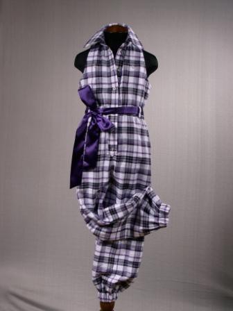 Комбинезон из хлопка для активных девочек. Атласный пояс сиреневого цвета превращает спортивную модель в пикантную модную вещичку,которую можно надеть на пикник.Американская пройма,рубашечный воротник на стойке,обилие карманчиков,кнопок и эластичная широкая резинка на поясе и щиколотках- сделают эту вещь вашей любимой.