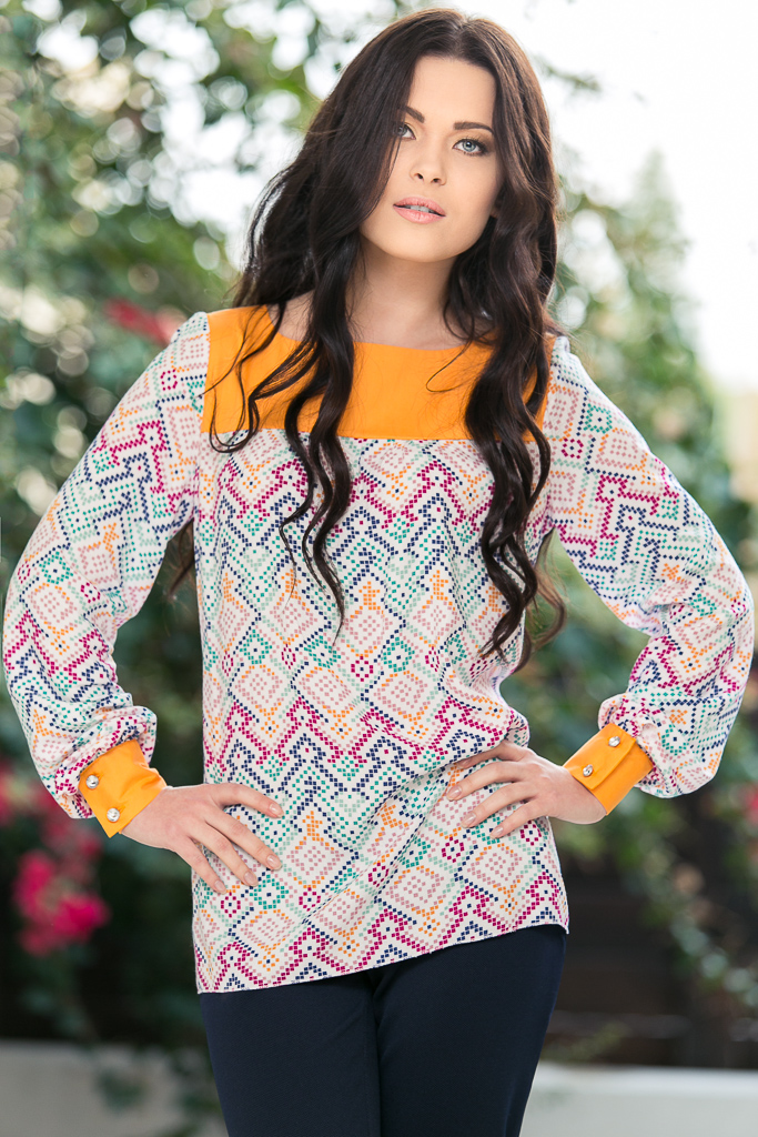 Модный покрой и яркая расцветка делают эту блузку трендом сезона!