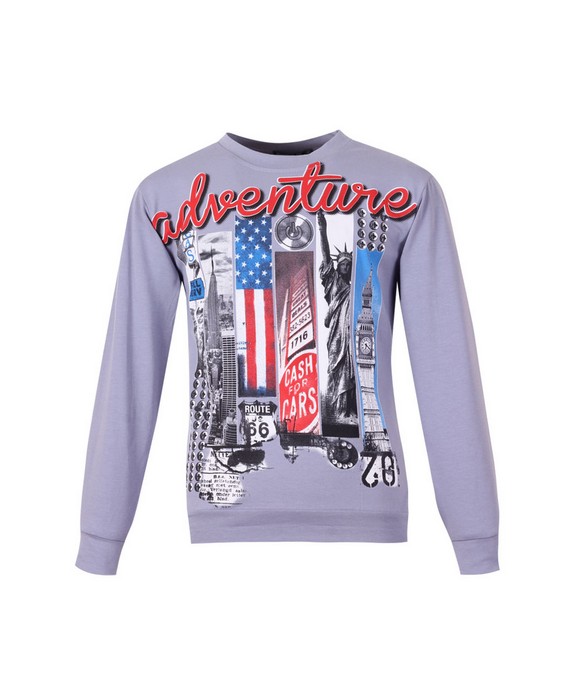 Толстовка с длинным рукавом, украшена ярким принтом спереди.