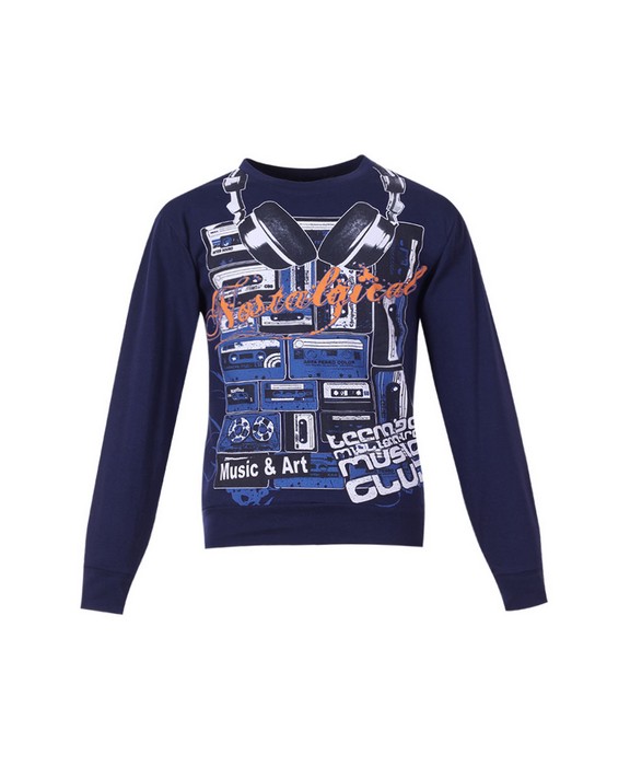 Толстовка с длинным рукавом, украшена ярким принтом спереди.
