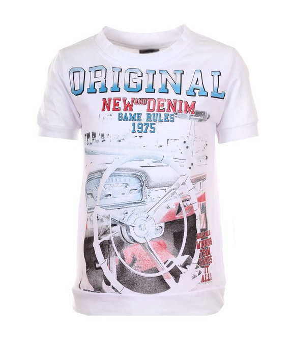 Футболка с коротким рукавом, украшена ярким принтом спереди. Оттенок изделия и цвет принта может отличаться от представленного на фото!!!