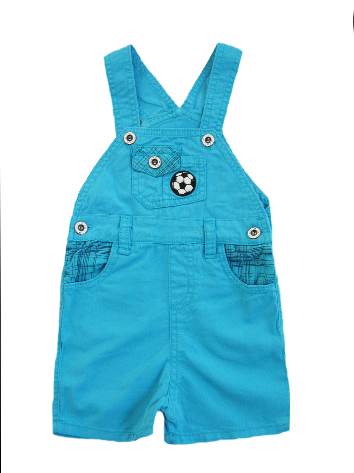 Комбинезон с двумя карманами, застегивается на лямках и по бокам на пуговицы. Украшен вышивкой.