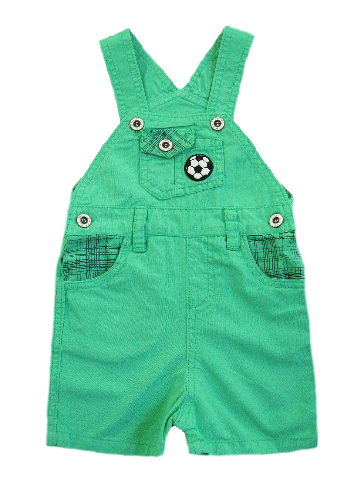 Комбинезон с двумя карманами, застегивается на лямках и по бокам на пуговицы. Украшен вышивкой.