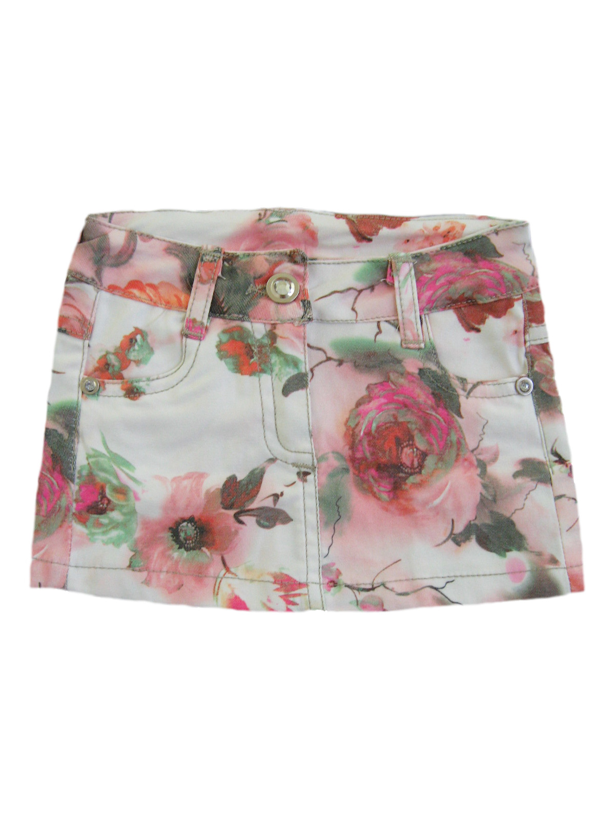 Юбка цветная с двумя карманами, застежка на пуговицу и молнию . Пуговица украшена декоративным камнем.