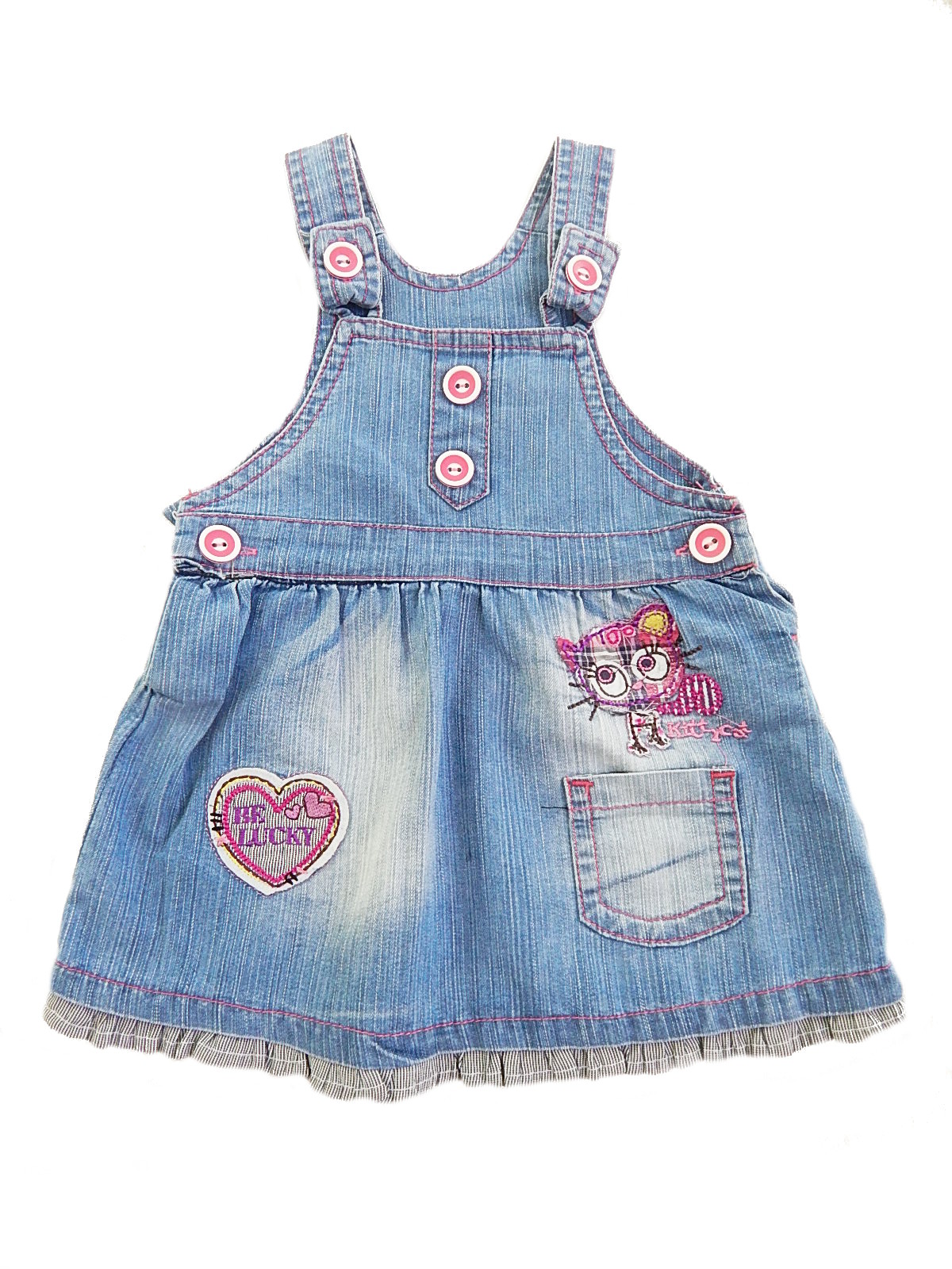 Сарафан на лямках, с одним карманом. Лямки на пуговицах и по бокам застежка на пуговицах. Украшен вышивкой и пуговками.