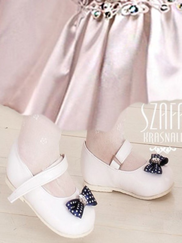 Туфли из экокожи,украшенные синим бантиком в горошек,и маленьким стразиком.Изготавливаются вручную,специально для фирмы KRASNAL