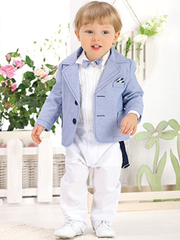 Элегантный костюм для лета,тонкий пиджак из хлопка,легкие хлопковые брюки,рубашка с регулируемой длинной рукава из 100% хлопка.Галстук-бабочка тонкий вязаный жилет из акрила связан кубиками.На пиджаке,немаловажная деталь присутствует нагрудный карман для платочка или бутоньерки
