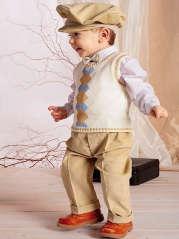 Стильные вельветоновые брюки с подворотом, спортивная рубашка с регулируемой длинной рукава? тонкий акриловый жилет с простым и элегантно-классическим рисунком? кепка в тон брюк