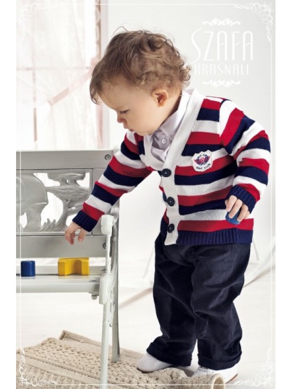Костюм спортивного стиля,в состав костюма входят:хлопковая рубашка,кардиган в широкую полоску с треугольным вырезом,вельветовые брюки с отворотами/
