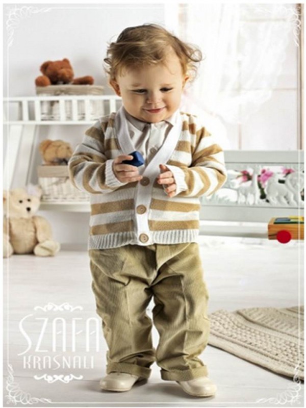 Костюм спортивного стиля,в состав костюма входят:хлопковая рубашка,кардиган в широкую полоску с треугольным вырезом,вельветовые брюки с отворотами/