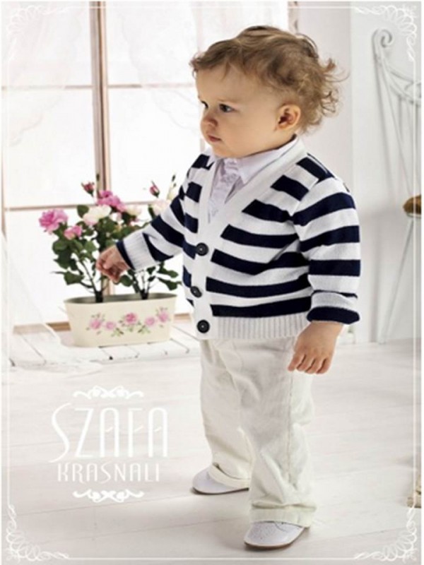 Костюм спортивного стиля,в состав костюма входят:хлопковая рубашка,кардиган в широкую полоску с треугольным вырезом,вельветовые брюки с отворотами/