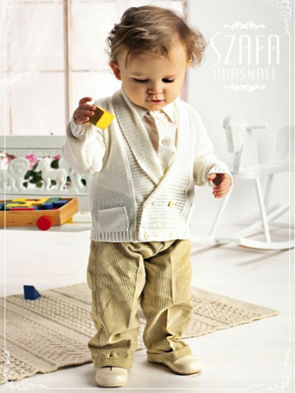 Костюм ,на каждый день,состоит из кардигана с шалевым воротником,вязаным с застежкой на четыре крупных пуговицы,рубашка с регулируемым рукавом,брюки из вельвета слаксы,вязанная шапочка.Для похода в театр ,такой костюм не подходит,но спектр его использования довольно широкий:в гости,в кино,в кафе,на прогулку и т.д подходит идеально.Имидж костюма -стильная простота