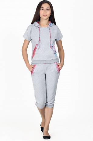 Костюм для спорта и отдыха с капюшоном и функциональными карманами. Отделка клетка и металические люверсы.