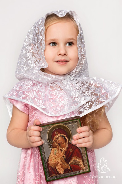 Белоснежный платок для маленького ангела. Прелесть этого платка в нежном цветочном узоре на ажурной сетке, насыщенном рисунке плетения, а также в изысканных кружевных фестонах вокруг лица. Косая бейка в тон основной ткани подчеркивает воздушную красоту вышивки и кружев. Пуговица-кристалл Swarovski украшает платок, делая его праздничным и нарядным.