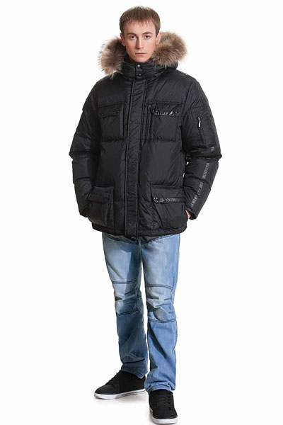 Мужской пуховик с двумя верхними накладными карманами на кнопках и двумя накладными карманами на кнопках и молнии внизу. На левом рукаве и на левой половинке переда около верхнего кармана есть карманы с молниями. Для декора куртки используется основная ткань на блестящую сторону. Капюшон с мехом. Куртка для мужчин, предпочитающих практичность и комфорт.