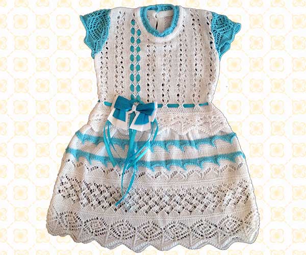 Платье ажурное с лентами. Цвет:Белый-бирюзовый. Состав:100% хлопок.Длина 45,55 см, 2-3 года, 4-5 лет.
