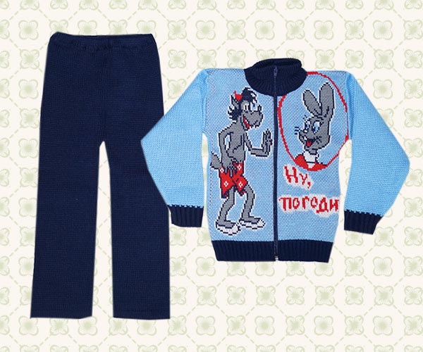 Костюм детский: кофточка на молнии, штанишки.Состав:60% шерсть, 40% акрил. Рост:104-110, 4-5 лет.