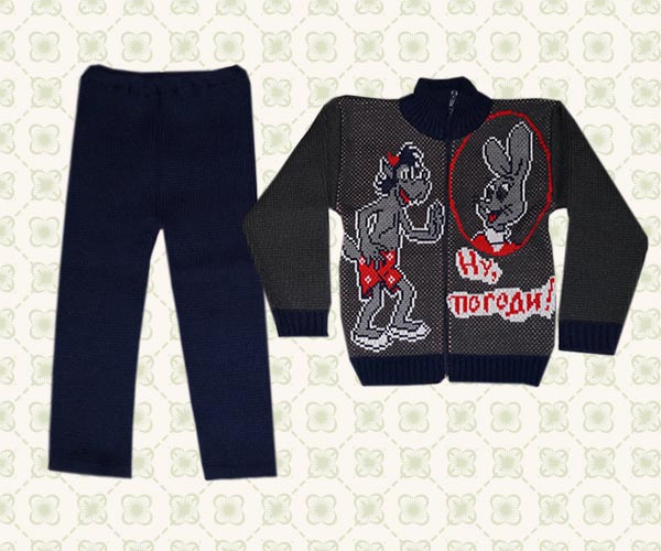 Костюм детский: кофточка на молнии, штанишки.Состав:60% шерсть, 40% акрил. Рост:104-110, 4-5 лет.