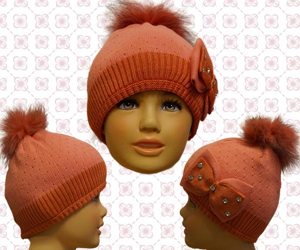 Шапочка для девочки, с мехом. Цвет: оранжевый. Состав: 60% шерсть, 40 % акрил. Размер 55-57