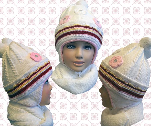 Комплект для девочки:шапочка и шарф. Цвет: белый. Состав: 60% шерсть, 40% акрил.Шапочка двойная, плотной вязки. Размер: 55