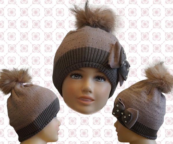 Шапочка для девочки, с мехом. Цвет: коричневый. Состав: 60% шерсть, 40 % акрил. Размер 55-57