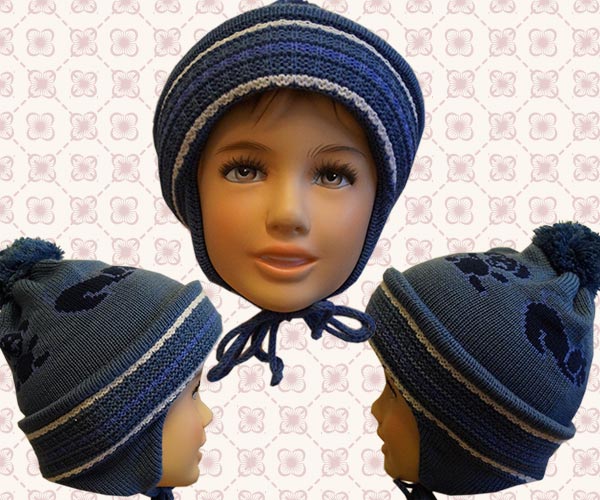 Шапочка детская для мальчика. Цвет: синий. Состав: 60% шерсть, 40% акрил.Двойная, плотной вязки. Размер: 55