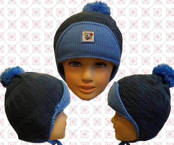 Шапочка-шлем для мальчика. Цвет: сине-голубой. Состав: 60% шерсть, 40% акрил.Двойная, плотной вязки. Размер: 55