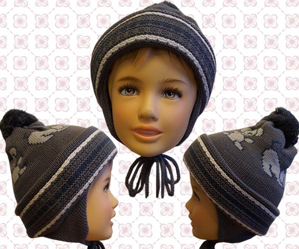 Шапочка детская для мальчика. Цвет: темно-серый. Состав: 60% шерсть, 40% акрил.Двойная, плотной вязки. Размер: 55
