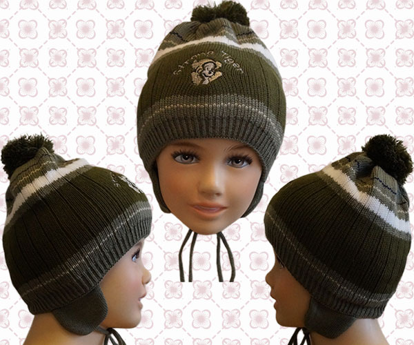Шапочка для мальчика,двойная.Цвет: зеленый. Состав: 60% шерсть, 40% акрил.Размер: 55