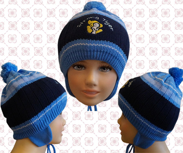 Шапочка для мальчика, двойная. Цвет: темно-синий. Состав: 60% шерсть, 40% акрил.Размер: 55