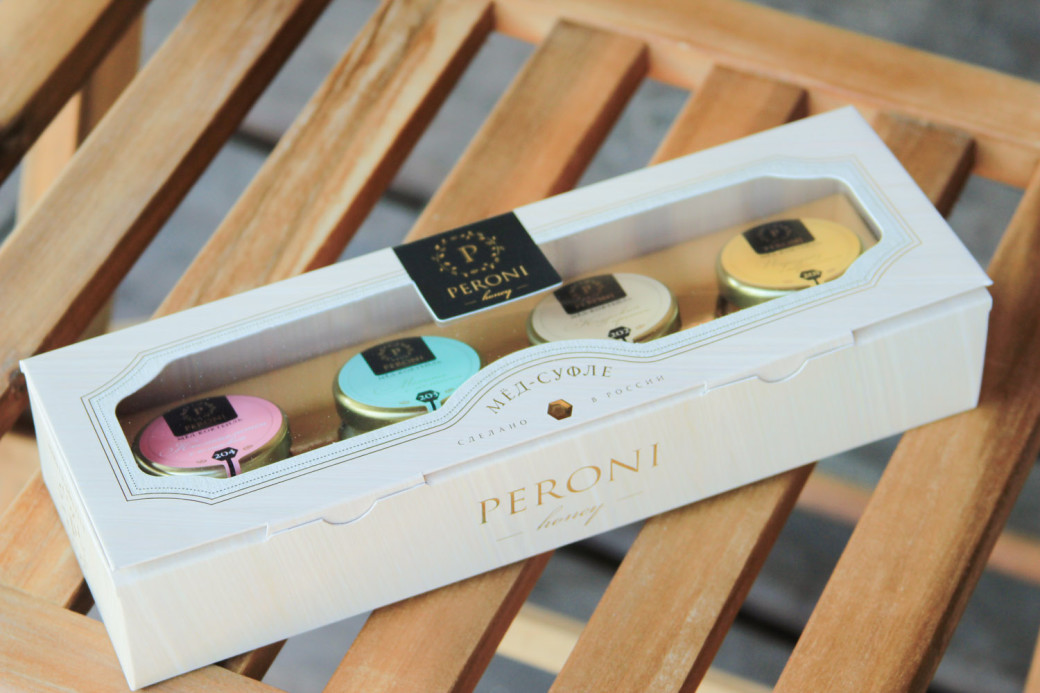 Медовые серии от Pe*ro*ni Hon*ey - прекрасное дополнение к завтраку, десертам и конечно приятный подарок друзьям и близким. Серия Коктейльная для тех, кто хочет попробовать самые яркие и необычные вкусы -- Парадайз с абрикосом, Космополитен с клюквой, Мохито с мелиссой, Маргарита с клубникой.
