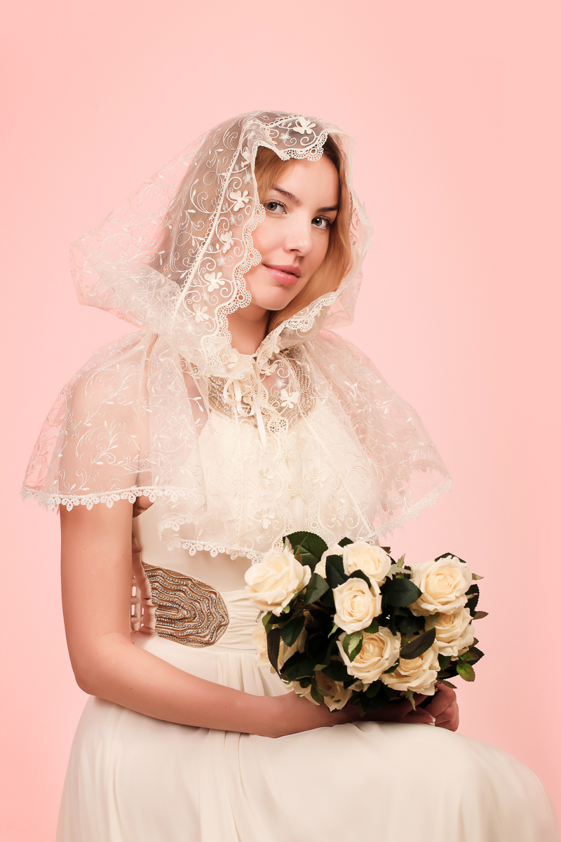 Отделка: Кружево вышивка шелковой нитью на фатине в цвет основной ткани. Кружево расположено по краю изделия со всех сторон