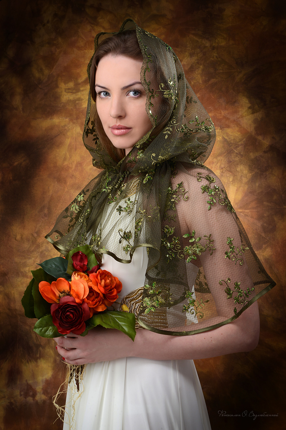 возле лица. Остальные края изделия обработаны декоративной тесьмой с пайетками или атласной лентой в цвет ткани.