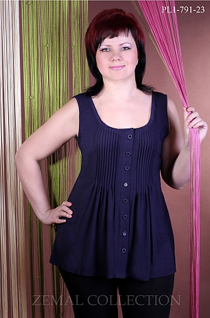 Легкая летняя туника оригинального кроя со сборкой на груди. Планка с пуговицами - функциональная.
