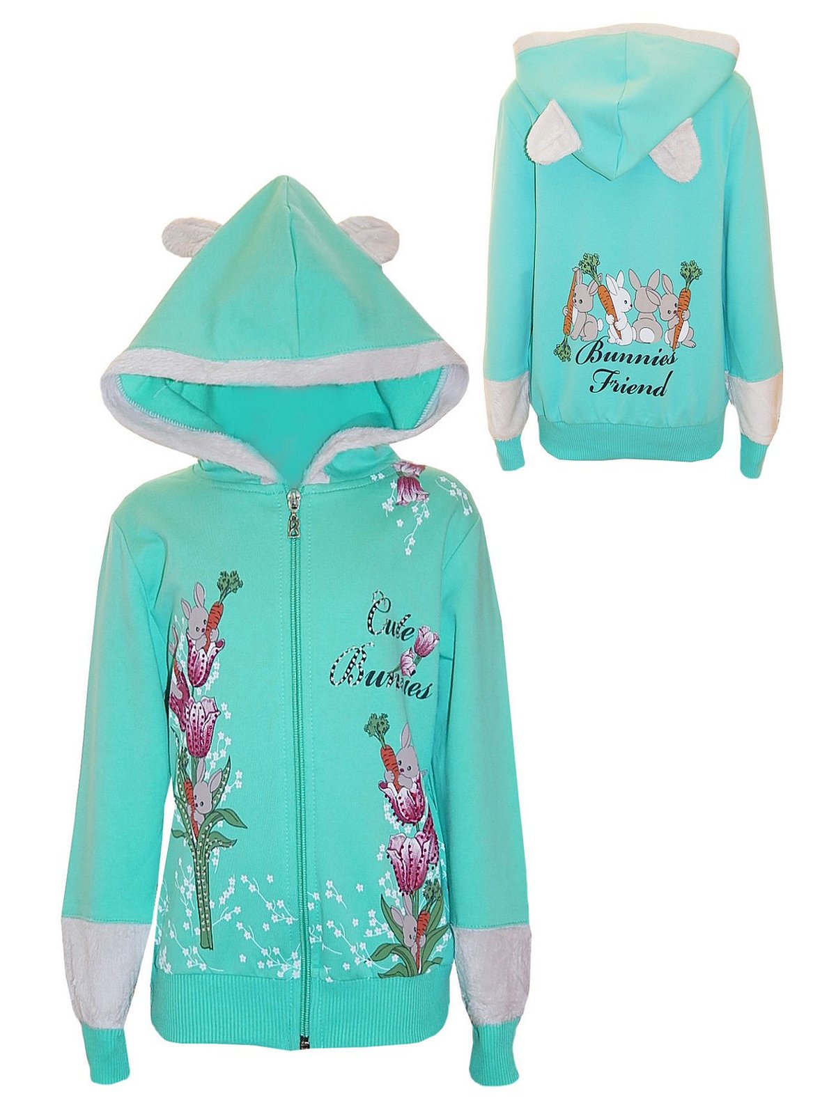 Толстовка с начесом с капюшоном с меховыми ушками. Украшена меховой аппликацией. Оттенок изделия может отличаться от представленного на фото!! Состав 95% хлопок 5;% эластан.Производство Турция.