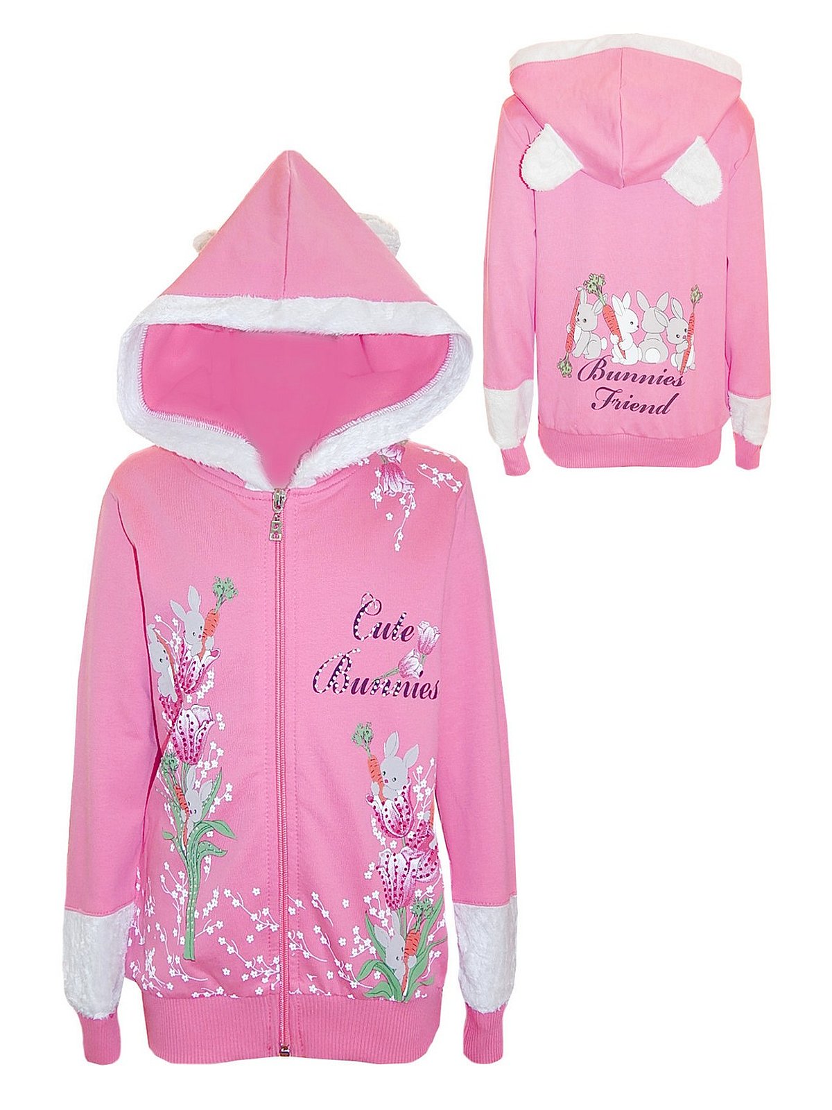 Толстовка с начесом с капюшоном с меховыми ушками. Украшена меховой аппликацией. Оттенок изделия может отличаться от представленного на фото!! Состав 95% хлопок 5;% эластан.Производство Турция.