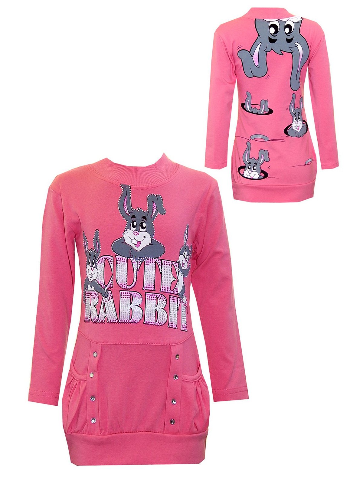 Водолазка с начесом, карманами и с длинным рукавом. Украшена спереди и сзади принтом, спереди стразами.Производство Турция. Состав 95% хлопок,5% эластан.