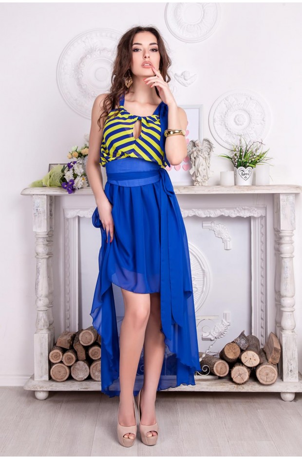 Летнее платье свободного покроя. Практичная модель, которая поможет решить вопрос "что надеть на выпускной" или на "летнюю романтическую прогулку". Придает силуэту женственности и воздушности. Юбка выполнена из однотонного шифона, модное сочетание разной длины подола поможет почувствовать себя принцессой. Верх платья можно регулировать за счет завязки. Добавьте к образу несколько аксессуаров - и Вы, как обычно, прекрасны.