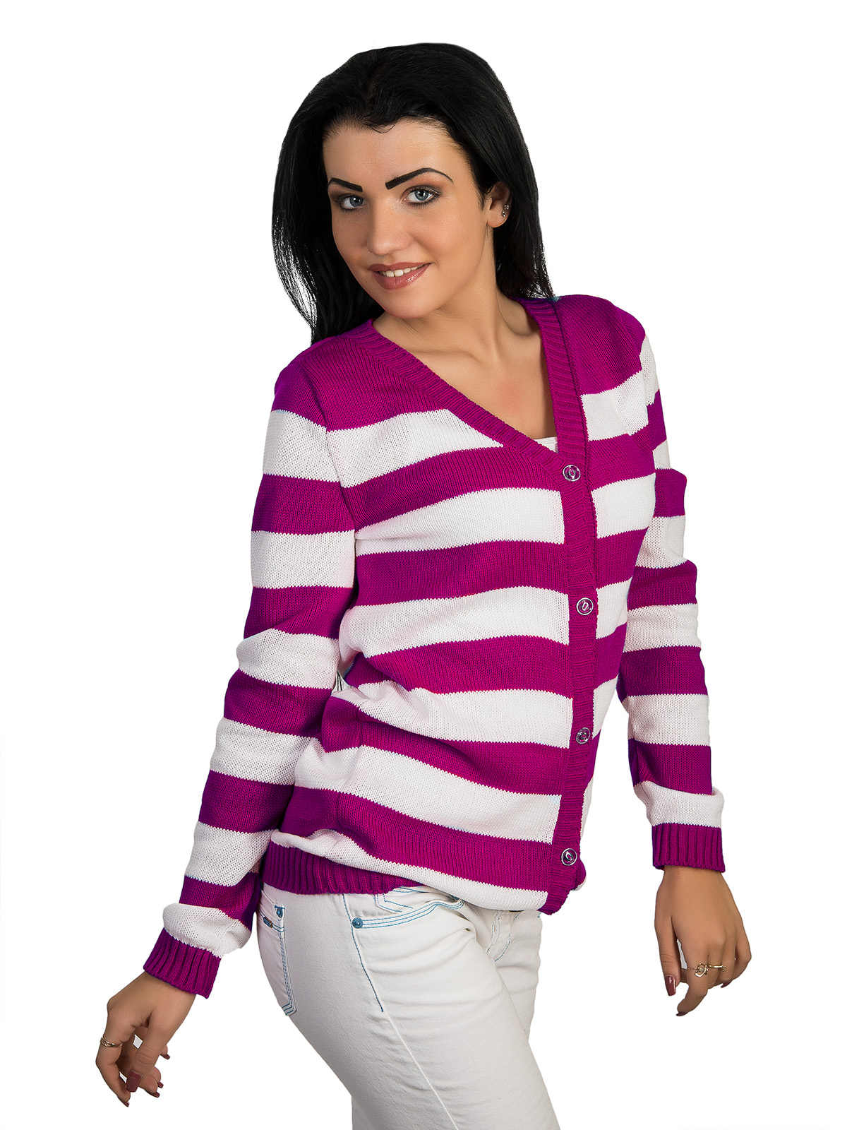 Стильная кофта прямого силуэта большой цветовой палитры с узором в полоску, который всегда актуален. Можно выбрать свой любимый цвет, либо же цвет, особо модный в этом году. Спереди кофта застегивается на пуговицы, что делает ее удобной и практичной. Длинный рукав согреет Вас холодными вечерами, а круглая горловина подчеркнет линию плеч. Кофта смотрится элегантной и молодежной, но носить ее могут девушки разных возрастов. Отделка горловины, полочек, рукавного, а так же нижнего манжет - ребристая. Моделька удобна и практична, а благодаря качественному крою и удачно подобранной цветовой гамме, она останется актуальна, вне зависимости от модных тенденций.