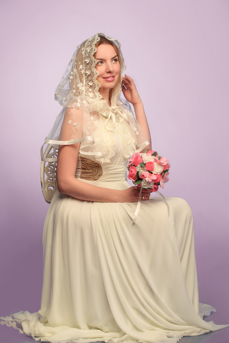 Таким образом, венчальное платье остается не закрытым платком.