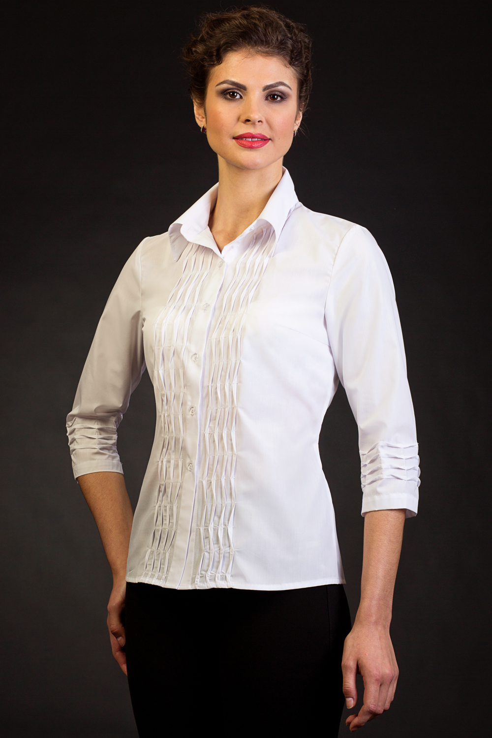 Изысканные буфы по переду и низу рукава, придающие праздничный вид, никого не оставят равнодушным! Ткань: 55% хлопок, 45% ПЭ. Цвет: Белый