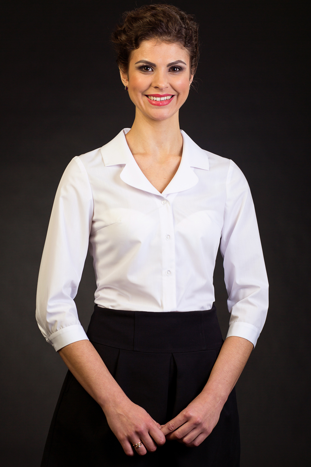 Классическая блузка с красивой линией декольте и изящным воротником Ткань: 55% хлопок, 45% ПЭ. Цвет: Белый