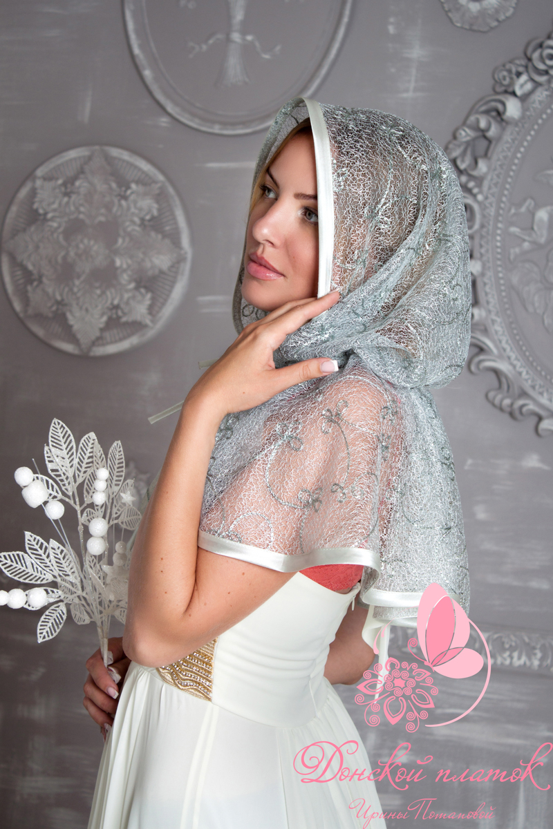 Платок-палантин задает тон образу и настроению. Серебристый блеск, цветочный орнамент, фактурное переплетение нитей создает эффект воздушности и невесомости одновременно.