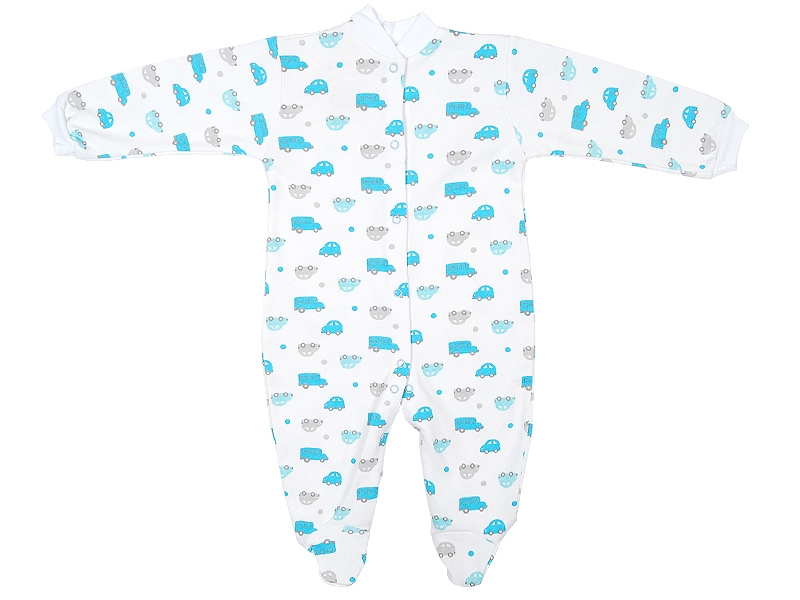 Комбинезон из трикотажного полотна (интерлок) с воротником-стойкой. Рукава длинные на манжетах, застёжка на кнопки по переду и по внутреннему шву (для удобной смены подгузника).