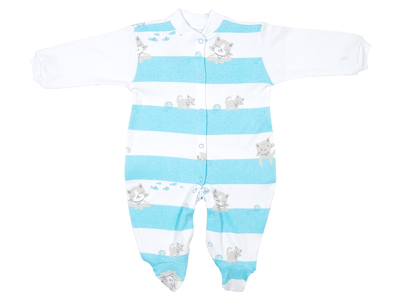 Комбинезон из трикотажного полотна (интерлок) с воротником-стойкой. Рукава длинные на манжетах, застёжка на кнопки по переду и по внутреннему шву (для удобной смены подгузника).