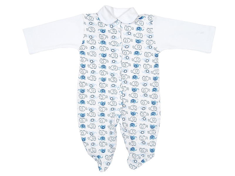 Комбинезон из трикотажного полотна (интерлок) с отложным воротником. Рукава длинные, застёжка на кнопки по переду и по внутреннему шву (для удобной смены подгузника).