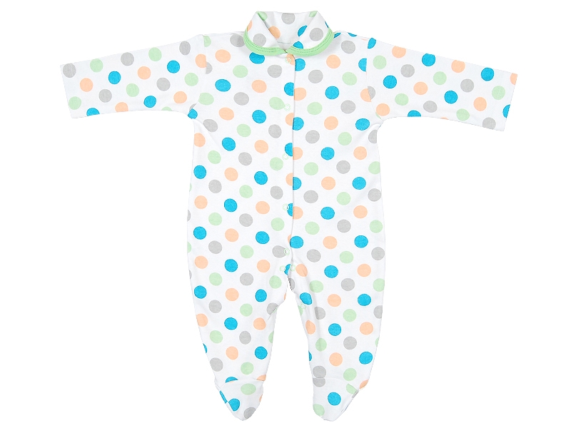 Комбинезон из трикотажного полотна (интерлок) с отложным воротником. Рукава длинные, застёжка на кнопки по переду и по внутреннему шву (для удобной смены подгузника).